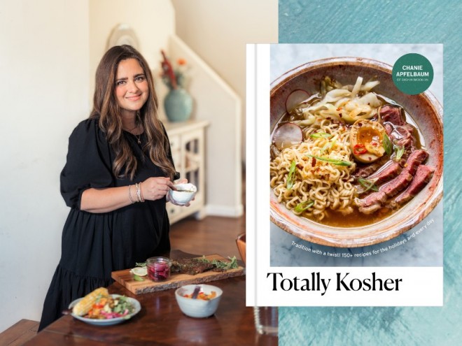 Although you’d never guess it from a quick skim of her books or a scroll through her Shabbat cook-along Instagram stories, Chanie Apfelbaum was not always the cook she is today. As she notes in the introduction to her new cookbook, Totally Kosher, as a young newlywed Apfelbaum had “never stepped foot into the kitchen.” She goes on to joke that, when met with the challenge of what to cook for dinner, she turned to takeout — and come Shabbat, she relied on her mother’s recipes for classic Ashkenazi fare. However, a crucial shift came when she began to understand her kitchen as an arena for her creativity, using flavor and visual appeal to guide her.