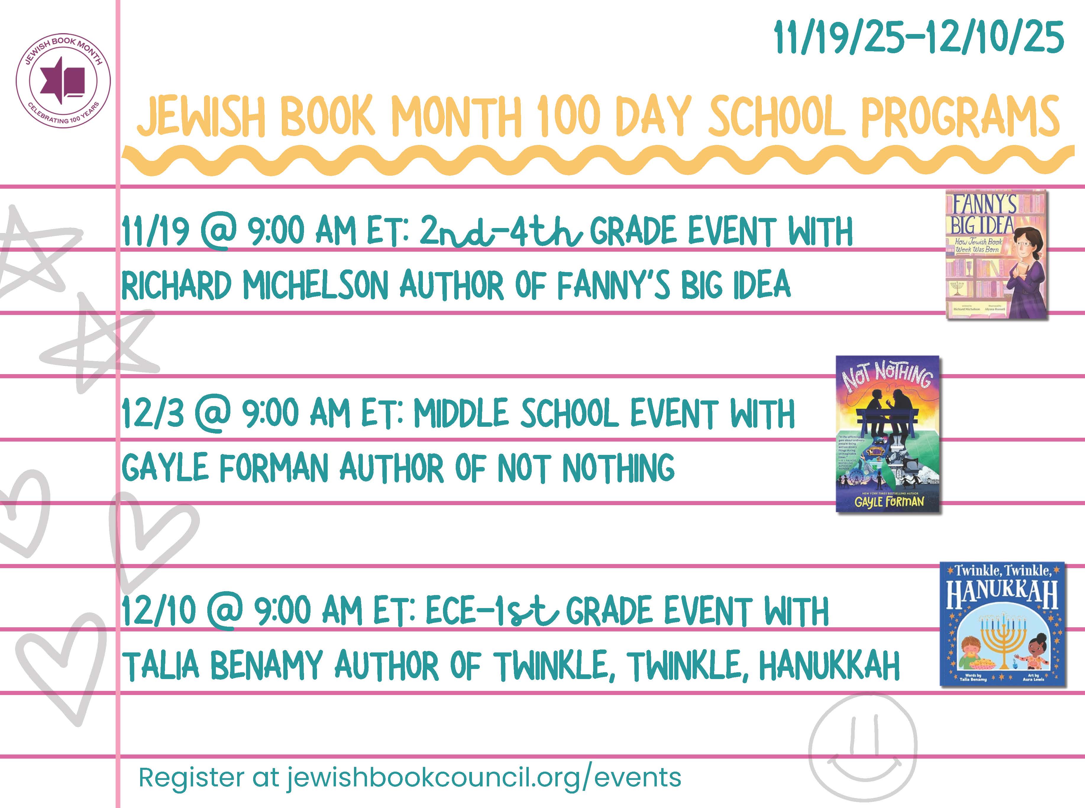 Jewish Book Month 100 Day School Events
