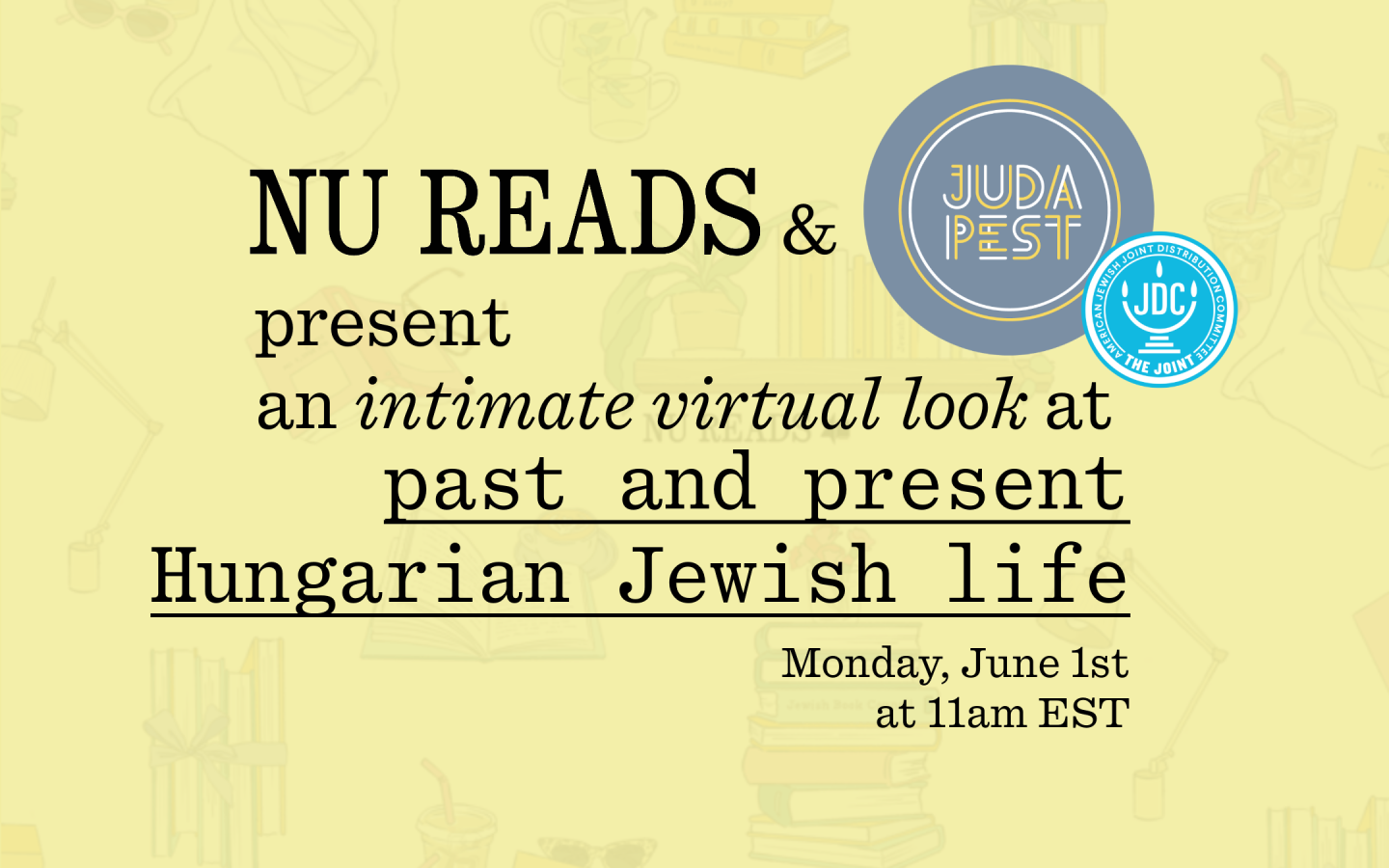 Event A Virtual Nu Reads Interactive Tour of Dohány and the Jewish Quarter Monday, June 1, 2026 11am–12pm Virtual
