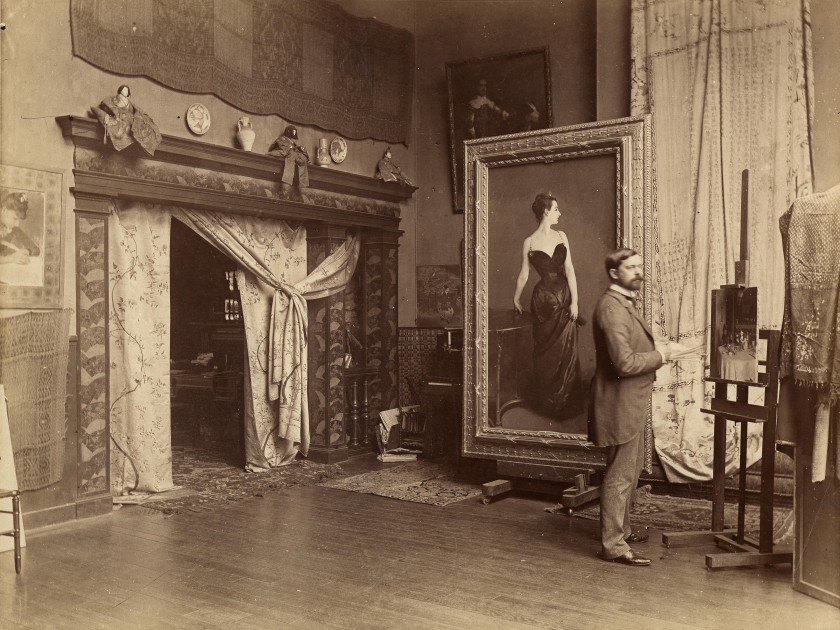 John Singer Sargent in his studio with Portrait of Madam X, Photo by Adolphe Giraudon, 1885