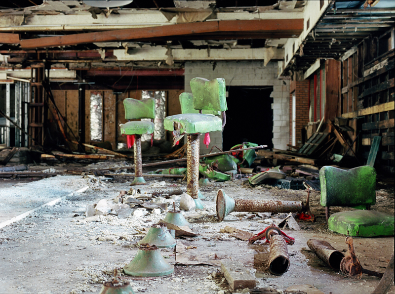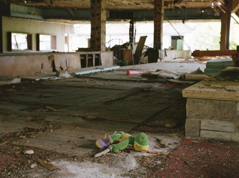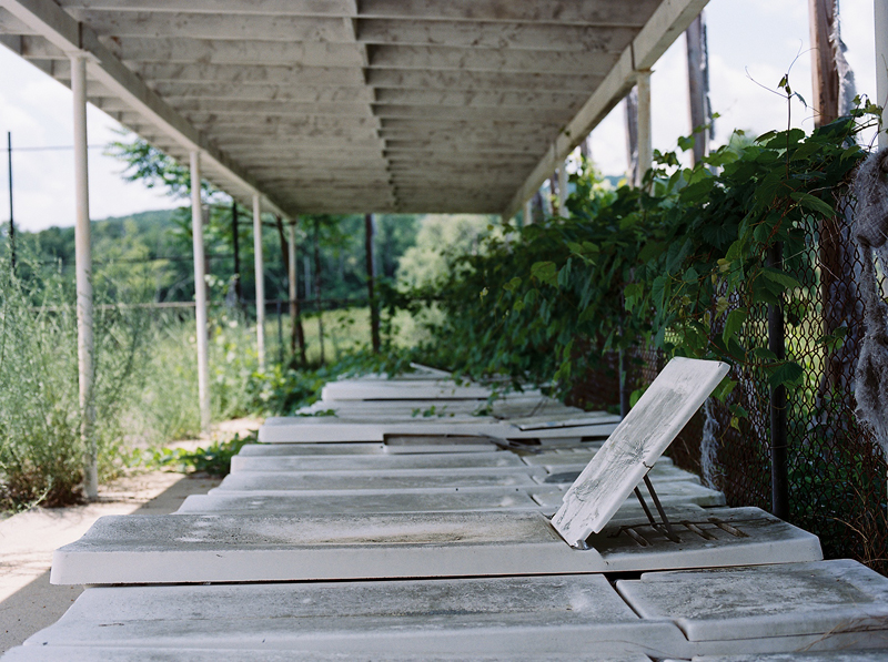 Upon making various trips to my photograph the region notably known as the Borscht Belt in each season, I ended up with hundreds if not thousands of photographs. In the end, I had to make some crucial edits. Edits, with regard to photographs, shape an overall narrative and lead a viewer’s eyes through a curated selection of imagery. The book and series was edited over a period of about three months and is intended to flow like a voyage of sorts, traversing the abandoned hotels and bungalow colonies of the area just as I did, revealing relics and remnants both close-up and from a distance.