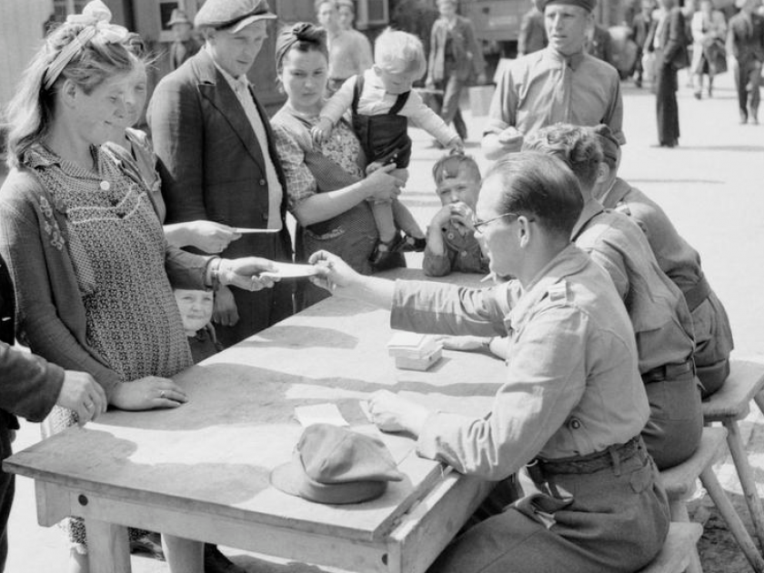 A Polish family registering at No. 17 Displaced Persons Assembly Centre in Hamburg Zoological Gardens, 18 May 1945, No. 5 Army Film & Photographic Unit, Mapham J (Sgt). War Office Second World War Official Collection, Imperial War Museums