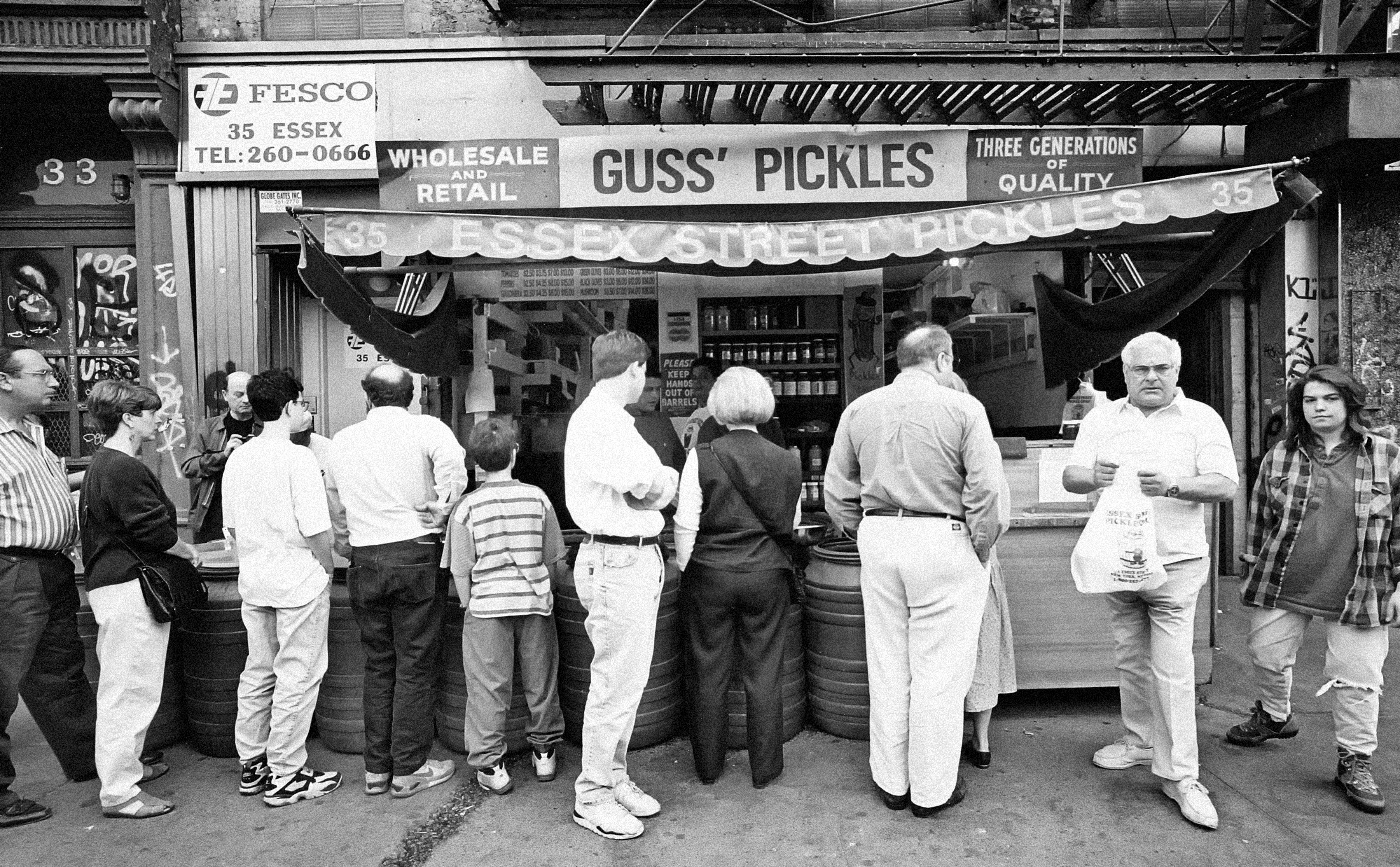 1933 Kaplan’s pickle stand at the corner of 144 Orchard Street