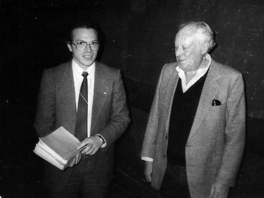 Alexan­der Smuk­ler presents a samiz­dat copy of Exo­dus in Russ­ian to author Leon Uris. Moscow, Novem­ber 1989. Col­lec­tion of Inna and Yuli Kosharovsky.
