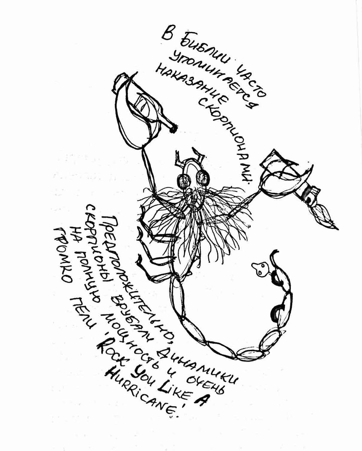 The Bible frequently mentions punishment meted out by scorpions. Presumably this is because scorpions would blast the speakers at max volume and yell “Rock You Like a Hurricane.”
